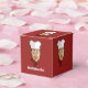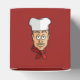 Cabeça de chef com chapéu, corcunda vermelha e texto personalizado.