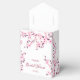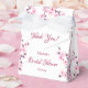 Esta caixa de favoritos de chá de panela florescente apresenta flores bonito de cereja rosa em um fundo branco. Caixa botânica com um obrigado você escreve texto, texto do chá de panela e um nome personalizado de noiva em um script caligráfico elegante. Para mais alterações, clique em: Editar design. Você pode mudar completamente o texto para usá-lo para aniversários, eventos corporativos ou outras ocasiões.