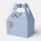 Caixa de Favor do Casamento de Casamento de Hídrangea azul elegante, com um belo design floral, junto com seus nomes, data do evento e texto 'obrigado você'. Personalizável para se adequar à sua própria preferência. O azul claro de "madeira do deserto" é na moda, elegante com os tons de baixo. Esta design só acrescenta algo especial ao seu chá de panela, recepção, festa de noivado ou janto de ensaio.