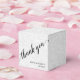 Elegante branco em filigrana branca, com seus nomes e obrigado em letras quicas na frente, essas caixas de favoritos de festas quadradas de 2 polegadas são bonitas para favores de casamento, favores de chá de panela ou qualquer ocasião especial.