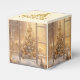 This favor gift box has a photo image reminiscent of a currier and Ives painting of a decorated Christmas tree in the window with plenty of snow around. Photo is on all four sides of this favor gift box, and the top has a printed-on gold color Christmas tree vector wishing your recipients a Merry Christmas over a champagne-blush background. Customize this item or buy as is.