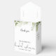 Caixa de lembrança para chá de noiva com rótulo floral de folhagem personalizada com seu nome, iniciais do monograma, data e mensagem especial. Criado por Thisisnotme©