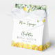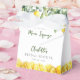 Essas caixas de lembrança de chuva de noiva de limões em aquarela modernas com 'ela encontrou seu amor' podem ser personalizadas com suas informações em tipografia estilosa. Projetado por Thisisnotme©