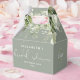 Caixa de lembrança personalizada para chuva de noiva elegante em verde sálvia com verdura floral, personalizada com seu nome, iniciais do monograma, data e mensagem especial. Desenhada por Thisisnotme©