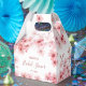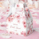 Esta caixa de lembrancinha personalizada para chá de noiva apresenta belas flores de cerejeira em aquarela sobre um fundo branco e uma elegante caligrafia manuscrita. Personalize com o nome da noiva e a data.