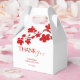 Caixa de agradecimento elegante e simples para Chuva de Noiva com flor de cerejeira vermelha e texto em caligrafia vibrante.