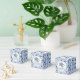 Caixas de lembrança bonitas podem conter doces ou uma pequena lembrança especial que você escolher para seus convidados. Adornado com uma simples concha de coral do mar sobre uma rocha que é preenchida com padrões coordenados, este é um design simples, limpo e moderno para uma noiva que ama um estilo contemporâneo. Esta é uma aquarela acrílica pintada à mão sobre tela. Um conjunto completo de papelaria e decoração de noiva está disponível. Direitos autorais, Audrey Jeanne Roberts.