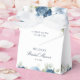 Caixa de lembrança elegante para chá de noiva com flores azuis, brancas e folhagens verdes para uma festa de noivado com tema botânico ou almoço. Adicione um nome, ocasião, data e uma mensagem clicando no botão "Personalizar".