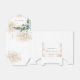 Um fundo branco decorado com folhagem de eucalipto e folhas douradas e pó de brilho dourado falso. Com o texto: Chuva de Presentes de Noiva e Obrigado. Personalize e o nome da futura noiva