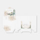 Um fundo branco decorado com folhagem de eucalipto e folhas douradas e purpurina dourada falsa. Com o texto: Chuva de Presentes e Obrigado. Personalize com o nome da futura noiva
