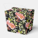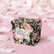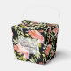 Lindas flores em tons de rosa e vermelho em aquarela e folhagens elegantes em fundo preto destacam essas caixas de lembrancinhas de festa de chá de noiva para levar. Itens COMBINADOS em nossa loja.