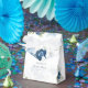 Caixa de lembrança elegante de chuveiro de noiva com flores azuis, brancas e folhagens verdes para uma festa de noivado com tema botânico ou almoço. Adicione um nome, ocasião, data e uma mensagem clicando no botão "Personalizar" acima.