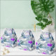 Caixinha De Lembrancinhas Cinza e padrão de flores roxas