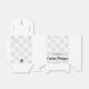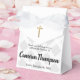 A apresentação é tudo. Esta adorável caixa de favores batismos, completada com um arco, foi projetada com padrões circulares, uma cruz de ouro falsa e o toque adicionado de personalização para o nome do seu bebê e data do evento. Cinza, ouro e branco, design elegante.