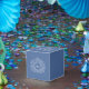 Caixinha De Lembrancinhas Circle white art leaves wedding classic blue