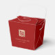 Um design moderno de dupla felicidade dentro de uma simples moldura dourada quadrada sobre uma caixa de lembrança de casamento com fundo vermelho clássico. Um símbolo auspicioso usado em todos os casamentos chineses, orientais e asiáticos.