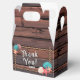 Thank your guests in true coastal cowgirl style with these personalized birthday favor boxes. Featuring rustic wood plank details, rope frame accents, and playful pastel seashells, starfish, and western elements, they bring a charming beach-meets-cowgirl vibe to your celebration.