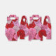 Uma ilustração minuciosa das camadas e camadas de rosas totalmente floridas em vermelho, rosa e lavanda.