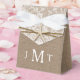 Celebre em estilo com essas elegantes e trendentes caixas de favoritos para casamento. A design apresenta um peixe-estrela rústico com burlap, lace e twine que é perfeito para qualquer celebração de casamento na praia. O design é fácil de personalizar com suas próprias iniciais de monograma e sua família e amigos ficarão entusiasmados quando receberem essas caixas de favor fabulosas. Itens correspondentes podem ser encontrados na coleção.