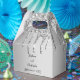 Personalize essas caixas de favoritos de casamento com brilho de prata. A frente e trás podem ser editadas para adicionar seus nomes e data de casamento e seu ditado.