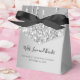 Personalize essas caixas de favoritos de casamento com brilho de prata. A frente diz Com amor e Obrigados ( mas pode ser editado ) Adicione seus nomes e data de casamento.
