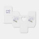 Flores roxas com buquê verde de maria no coração de fita branca de cetim e arco em fundo branco macio.