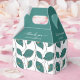 Forneça aos seus convidados de casamento favores personalizados. Estas pequenas caixas de favoritos de casamento contêm cores de casamento lacrimogêneo com um desenho de folha floral. Coloque em cada mesa de hóspedes ao redor de uma peça central de recepção. Coordene com seus arranjos florais. Os favores exclusivos do casamento incluem doces, velas, sementes de flores, amêndoas da Jordânia e até mesmo mistura de trilhas. Caixas de favores de casamento fazem maravilhosas ideias de casamento elegantes para um casamento no outono.