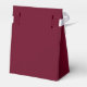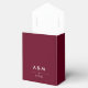 Esta elegante caixa de favor de casamento na moda apresenta um texto branco moderno sobre um fundo cor de marsala de tendências.