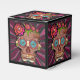 Caixinha De Lembrancinhas Crânio em madeira talhada com coroa floral