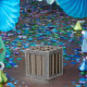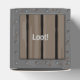 Uma caixa de madeira de cartoonaria castanha com bordas de cinza.