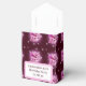 Esta caixa de favor mostra o padrão de um cavalo alado rosa (Pegasus) em voo com luzes mágicas ao redor. A espantosa criatura mítica também tem alguns tons sutis de vermelho e roxo, com um belo gradiente rosa, vermelho e roxo. O fundo é vermelho escuro. A aba frontal é rosa e há texto personalizável na frente. É perfeito para favores num evento temático de Pegasus!