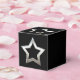 Uma cinza de prata brilhante forma de contorno de estrela colorida com aparência gravada sobre fundo preto. Design digital por Designmolce.