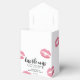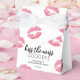 Caixa de lembrancinha de despedida de solteira fofa com marcas de batom brilhante rosa, a frase engraçada 'beije a senhorita adeus', o nome dela e a data da festa!