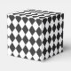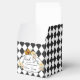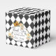 Um padrão preto e branco nítido e minimalista numa caixa de favores de aniversário é tocado com flores de pêssego e uma coroa de ouro aniversário. A coroa é dourada falsa com um coração de cor rubi. Um padrão de diamante forte é um padrão ladrilhado com etiqueta oval decorada para favores de festa de aniversário. Também pode ser usado para casamentos, e outras ocasiões.