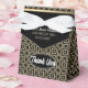 Formas quadradas geométricas na moda em preto e ouro. Tema de cor: preto, ouro e branco. Essa versátil caixa de favoritos pode ser facilmente personalizada aqui para se adequar a QUALQUER evento, exemplos: lembranças formais para os participantes levarem para casa, para convidados de casamento, bolsa de Festa de aniversário, essências de Chá de panela e mais. As empresas também podem preenchê-los com amostras e/ou cupons de desconto e dá-los a clientes especiais, vencedores de suas competições de promocional e prêmios.