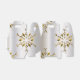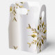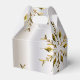 Uma caixa de presente de Natal festiva com um padrão de flocos de neve ouros espalhados sobre um fundo metálico de prata para adicionar um toque de classe e estilo ao seu presente de Natal este ano.