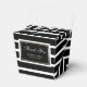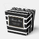 Caixas de favoritos personalizadas, preto e branco, com listras brancas em fundo preto. Personalize facilmente as caixas de favoritos de casamento preto e branco com seus detalhes de casamento. Nossas modernas caixas de favor de casamento preto e branco são perfeitas para sua elegante festa de casamento branca e preta. Esse obrigado personalizado que você favorece as caixas pode ser personalizado para outras ocasiões.