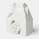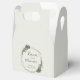 Boho style Chá de fraldas Favor Box com "Love and Obrigados" em um roteiro elegante junto com seu nome e título de evento, dentro de um quadro geométrico dourado cercado por verde e flores brancas. Estes temas botânicos que favorecem caixas com design neutro em gênero são excelentes se você está tendo um menino ou uma menina. Quadro cortesia de:<a href="http://www.freepik.com">Concebida por Freepik</a>