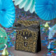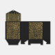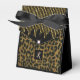 Bela caixa de favor com lantejoulas douradas impressas com diamante na parte superior e estampa de leopardo na frente e atrás. A letra do monograma personalizável está em uma moldura dourada e fundo preto. É perfeito para qualquer ocasião como aniversário, casamento, aniversário e mais