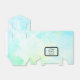 Um pano de fundo azul brilhante e pastel abstrato com pistas de verde-claro com um arco preto no topo da caixa para contraste e abaixo da aba em uma janela esboçada preta é onde você pode personalizar seu evento criando um toque na moda elegante para qualquer celebração.