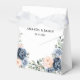 Caixa de favor de casamento geométrico, azul-poeirento, com buquês elegantes de marinho/azul-poeirento, branco, branco, rosa de pêssego e verde-sábio, folhas de eucalipto e elegante quadro neutro geométrico de brilho. Entre em contato comigo para obter ajuda sobre a personalização ou se você precisar de outro produto com este design.