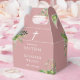 Esta elegante caixa de favores para batismo ou batizado com verdejante eucalipto botânico rosa em tons empoeirados pode ser personalizada com as suas informações em tipografia chic. Desenhada por Thisisnotme©