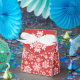 Dress up your holiday gifts and party favors with this festive red favor box featuring an elegant white snowflake pattern.
