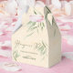 Caixa de favoritos para o casamento do kit Hangover, moderna minimalista e mesquinha tipografia de guião branca personalizável. O papel de artesanato bege claro com folhas verdes poeirentas adiciona um toque de uma sensação orgânica e elegância clássica.