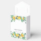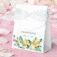 Caixas de presentes personalizadas elegantes para seus presentes convidados. Folhas verdes e limonias, a tipografia está em manuscrito e em letras impressas.