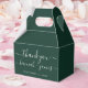 Emerald Verde Elegante Personalizado Obrigado A Caixa De Favor De Casamento. Possui fonte de script e design moderno. Personalize com o nome da noiva e noiva, a data do casamento e as cores.