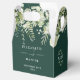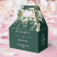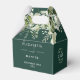 Caixa de lembrança de casamento em verde esmeralda elegante com flores e verdura personalizada com seus nomes, iniciais do monograma, data do casamento e mensagem especial. Concebido por Thisisnotme©