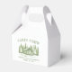 Caixa de lembrancinha de despedida de solteira com tema de cabana verde para um evento com tema de camping. Personalize com os detalhes do seu evento.