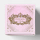 Era uma vez a princesa festa de aniversário de conto de fadas e chá de fraldas a favor de caixas com a coroa de ouro rico em um lindo fundo de espiral rosa e dourado. Você pode adicionar texto para personalizar.
