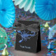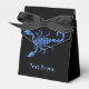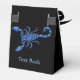 Desenho de escorpião azul com sombreamento 3D. Cor de fundo personalizada. Texto personalizado.